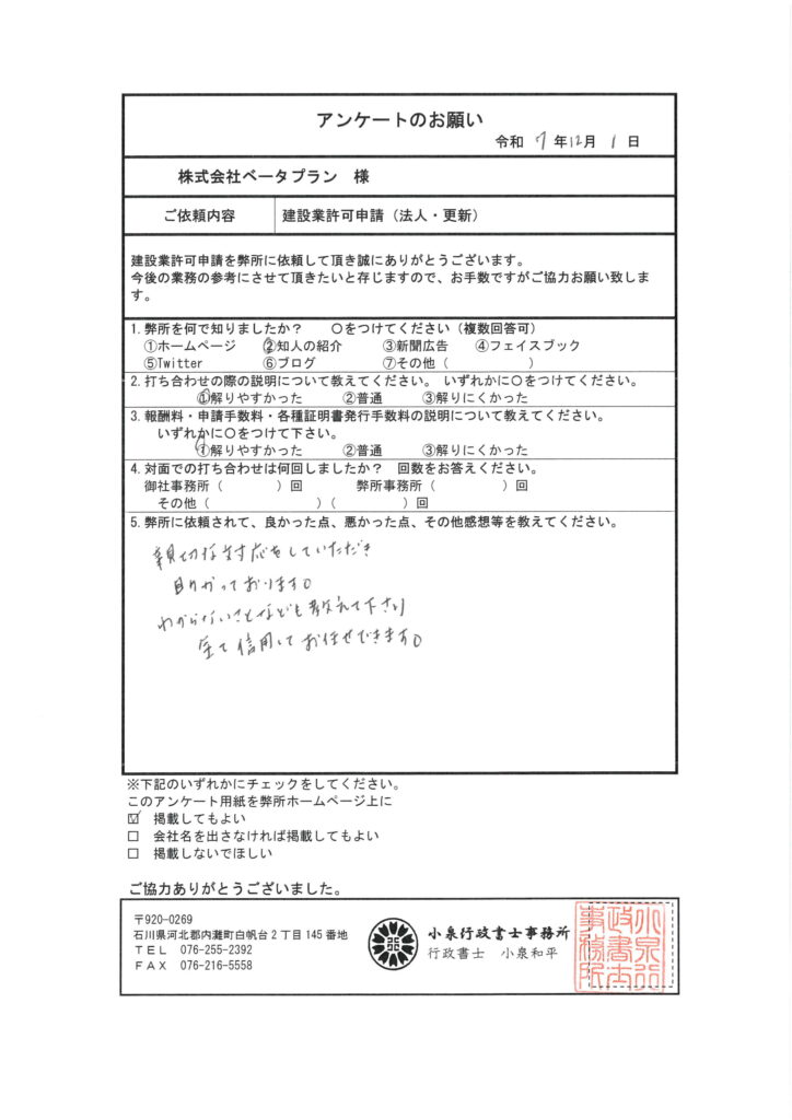 石川建設業許可申請代理センター
